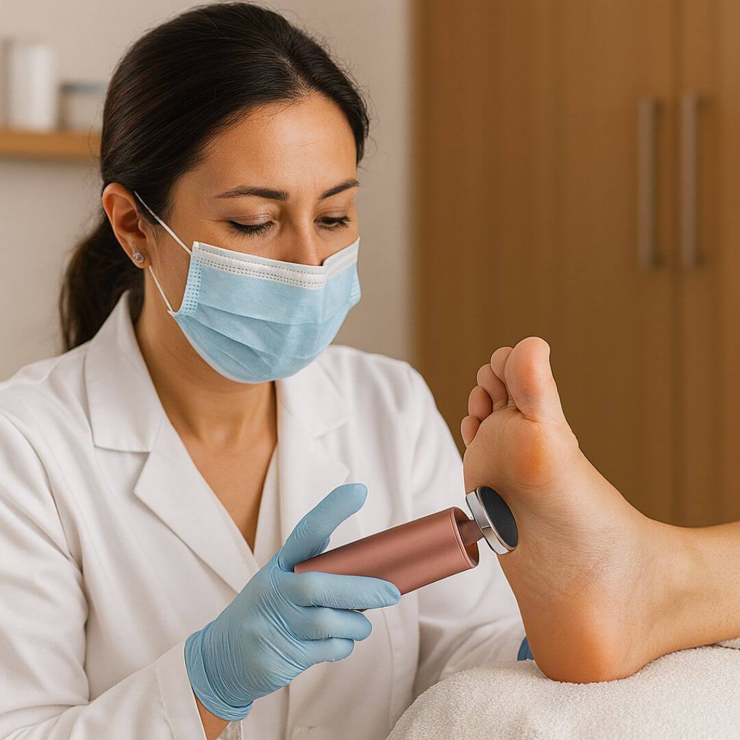 Ja – der louvana Hornhautentferner ist mit einem integrierten Drucksensor ausgestattet. Er stoppt automatisch, wenn du zu viel Druck ausübst – keine Schnitte, keine Verletzungen.